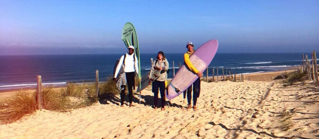 Eh oui, cela fait déjà 8 ans que nous sommes installés dans le quartier de Camentron, à Messanges. Depuis le premier jour, la recette reste inchangée : un hébergement qui prône le partage et la cohésion sociale, des cours de surf de qualité pour évoluer à votre rythme, et surtout une véritable connexion avec la nature landaise.
